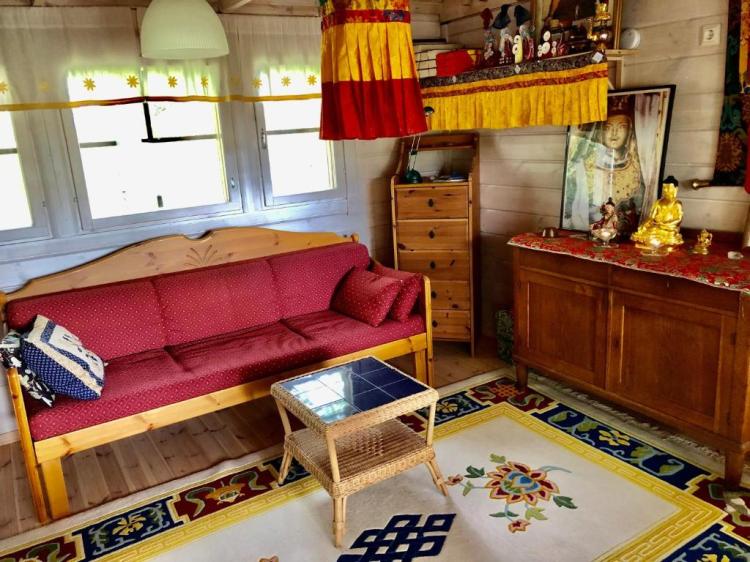 Voimamaja on ainutlaatuinen lepoon ja meditaatioon pyhitetty n. 40 m2 mökki avarassa maalaismaisemassa. Himalajahenkinen sisustus alttareineen, mutta länsimaiset mukavuudet. Täydellinen hyviin uniin, mielen lepuuttamiseen, ulkoiluun ja retriittipaikkana, myös etätyöhän ja opiskeluun.